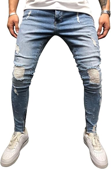 Jeans bleu pour homme avec trous et doublure. Nous savons que vous n'aimez pas passer des heures à chercher le jean déchiré parfait, c'est pourquoi nous avons créé notre sélection de jeans déchirés homme. Jean déchiré noir jeans skinny pour homme jeans troué vêtements homme jeans de motard déchiré. Les jeans troués hommes sont très populaires car ils donnent, portés, une. Troué aux genoux, doublure imprimé paisley.
